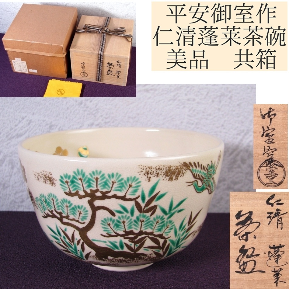 - 平安御室作 仁清蓬莱茶碗 幅:12.8cm 美品 共箱・共布付 茶道具/25k030