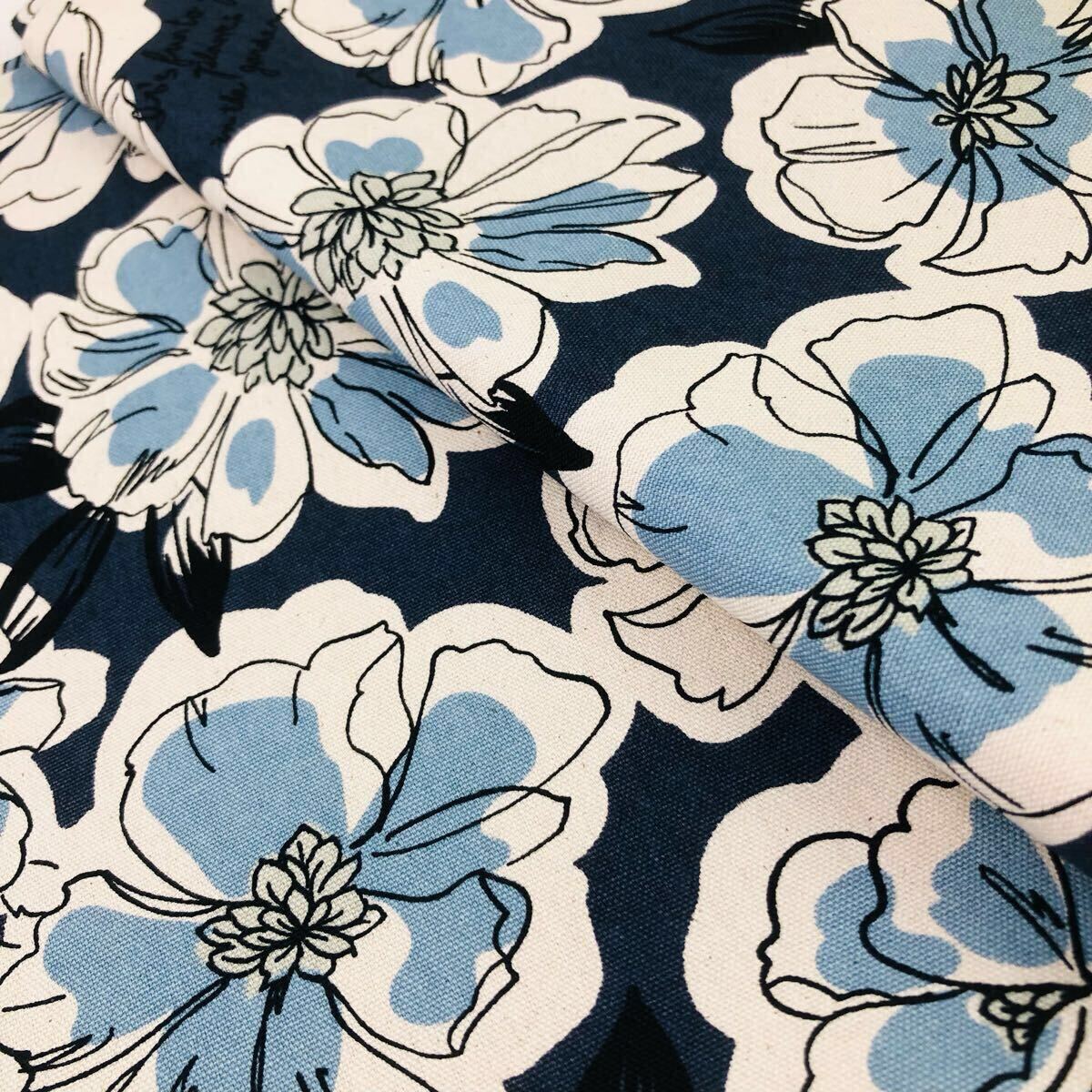 - 1m 日本製 生地 花柄 オックス生地 グレー 手書き風 はぎれ 110×100