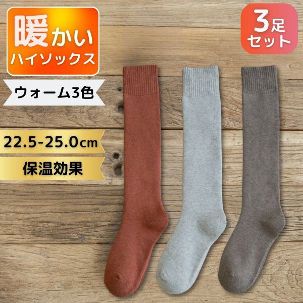 - ハイソックス 靴下 レディース 3足 セット 靴下 暖かい 保温効果 綿 厚手 レッド ライトグレー ブラウン 冷えとり ルームソックス パイル