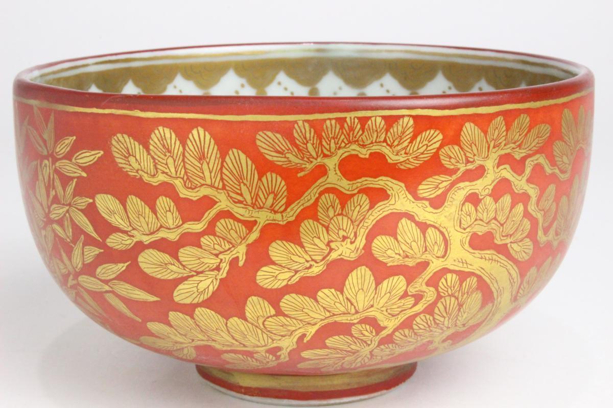 - 「狸庵-S」 裏千家 淡々斎宗匠 箱書 矢口永寿 作 金襴手 松竹梅 茶碗 九谷眛渓窯「共箱」/ 茶道具 茶碗 ☆本物保障☆u6li