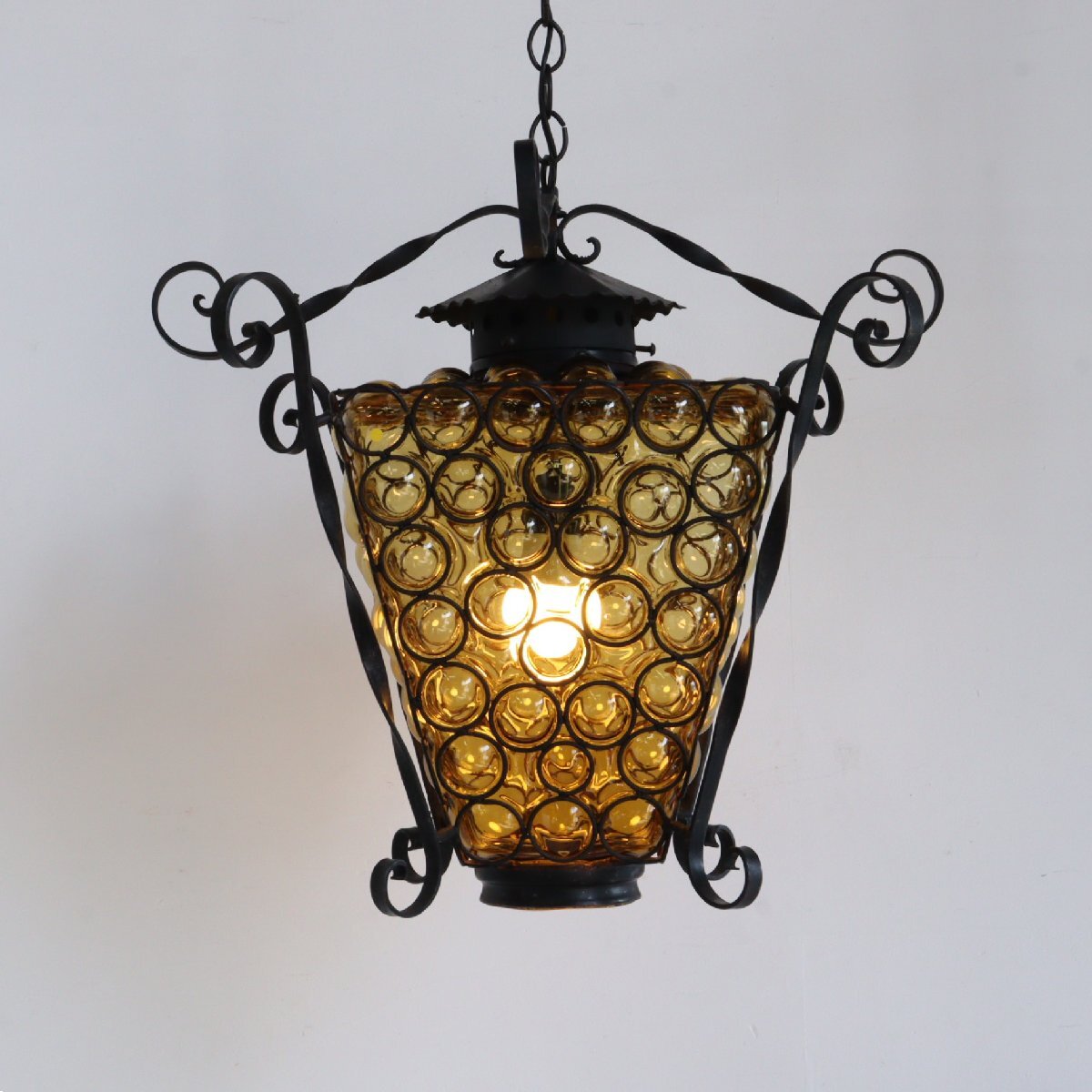 > ヴィンテージ カラーガラス ペンダントランプ/アメリカ アンティーク 吊り下げランプ カフェ 照明 レトロ#702-25-241-145