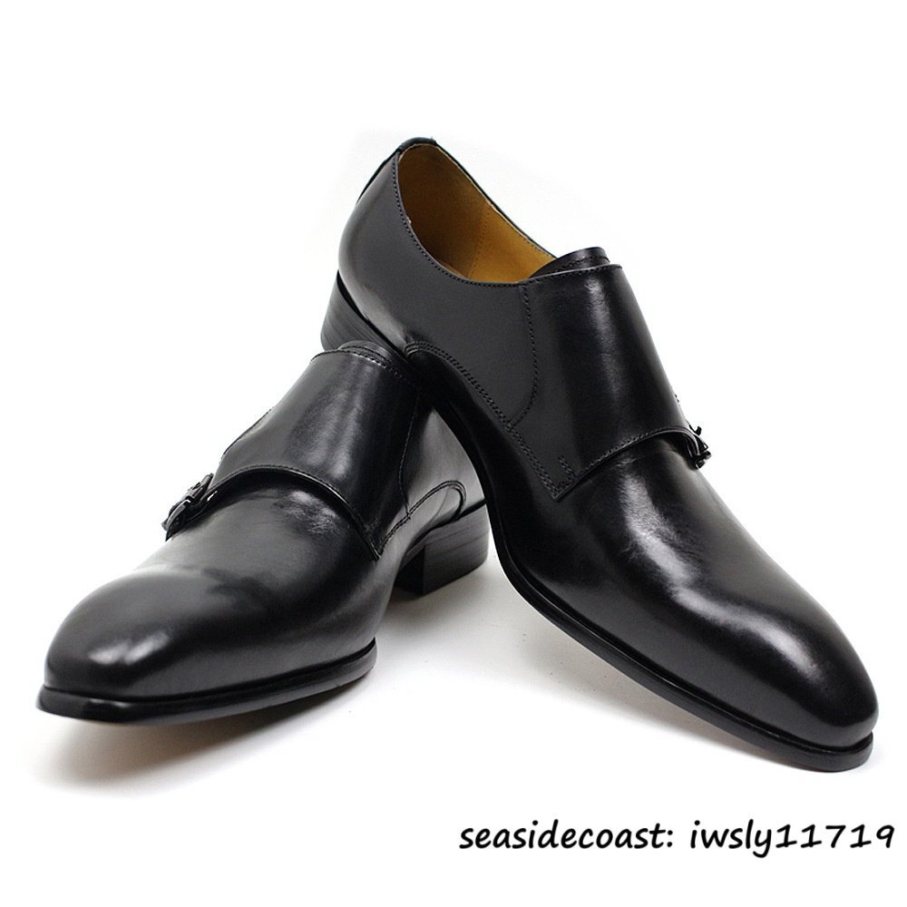 > 最高級★ダブルモンクストラップ 職人手作り 超希少 レザーシューズ 本革 ビジネスシューズ メンズ 革靴 新品 紳士靴 牛革 ブラック 26.0cm