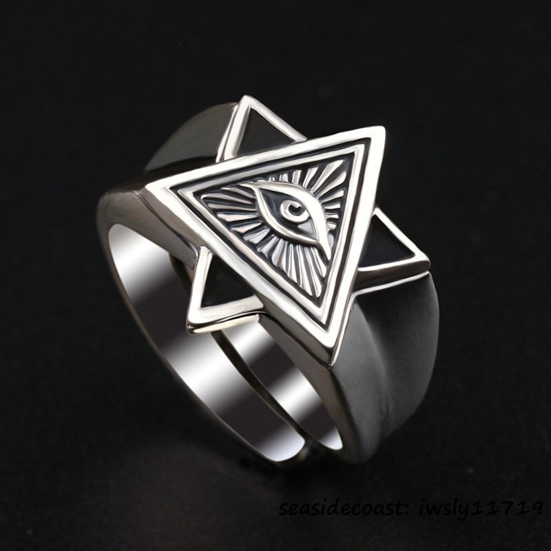 > 1円~◆シルバー925 リング ドクロ 星芒 幸福 祈り 幸せ ファッション 指輪 アクセサリー 男女兼用レディース サイズ調整可