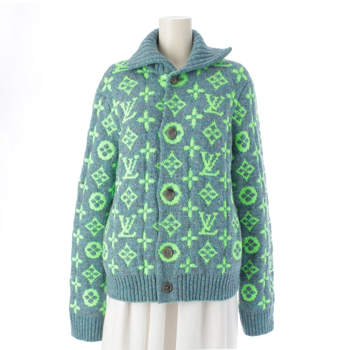 - ルイヴィトン 22SS ウール モノグラム シグネチャー ニット カーディガン RM221 グリーン M【中古】