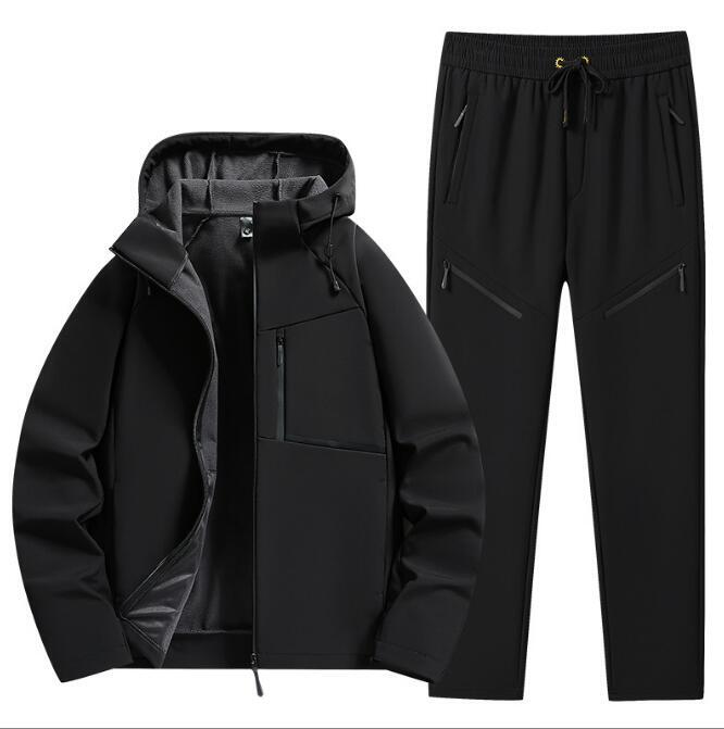 > 新作マウンテンパーカー 上下セット メンズ セットアップ 裏起毛 暖かい 防寒 ウインドブレーカー 上下 セット /黒L