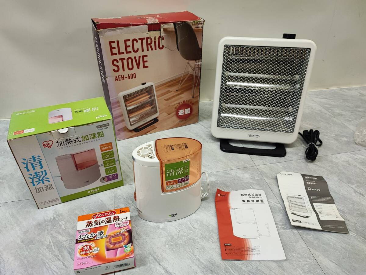 > ★◆【USED】3点セット 電気ストーブ AEH-400 加熱式加湿器 SHM-100T めぐリズム 蒸気の温熱シート 暖房 冬物家電 箱120サイズ