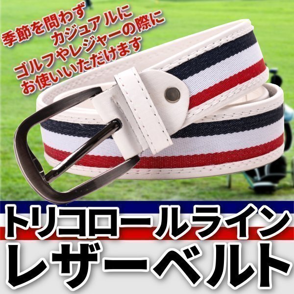 - ベルト メンズ レザー 男性 ビジネス カジュアル 学生 学生ベルト ピン式 トリコロール カラー ゴルフ ウエスト ホワイト 白 レザーベルト
