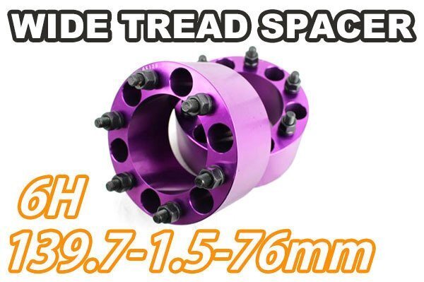 - ハイエース 200系 ワイトレ 6H 2枚組 PCD139.7-1.5 76mm ワイドトレッドスペーサー (紫)