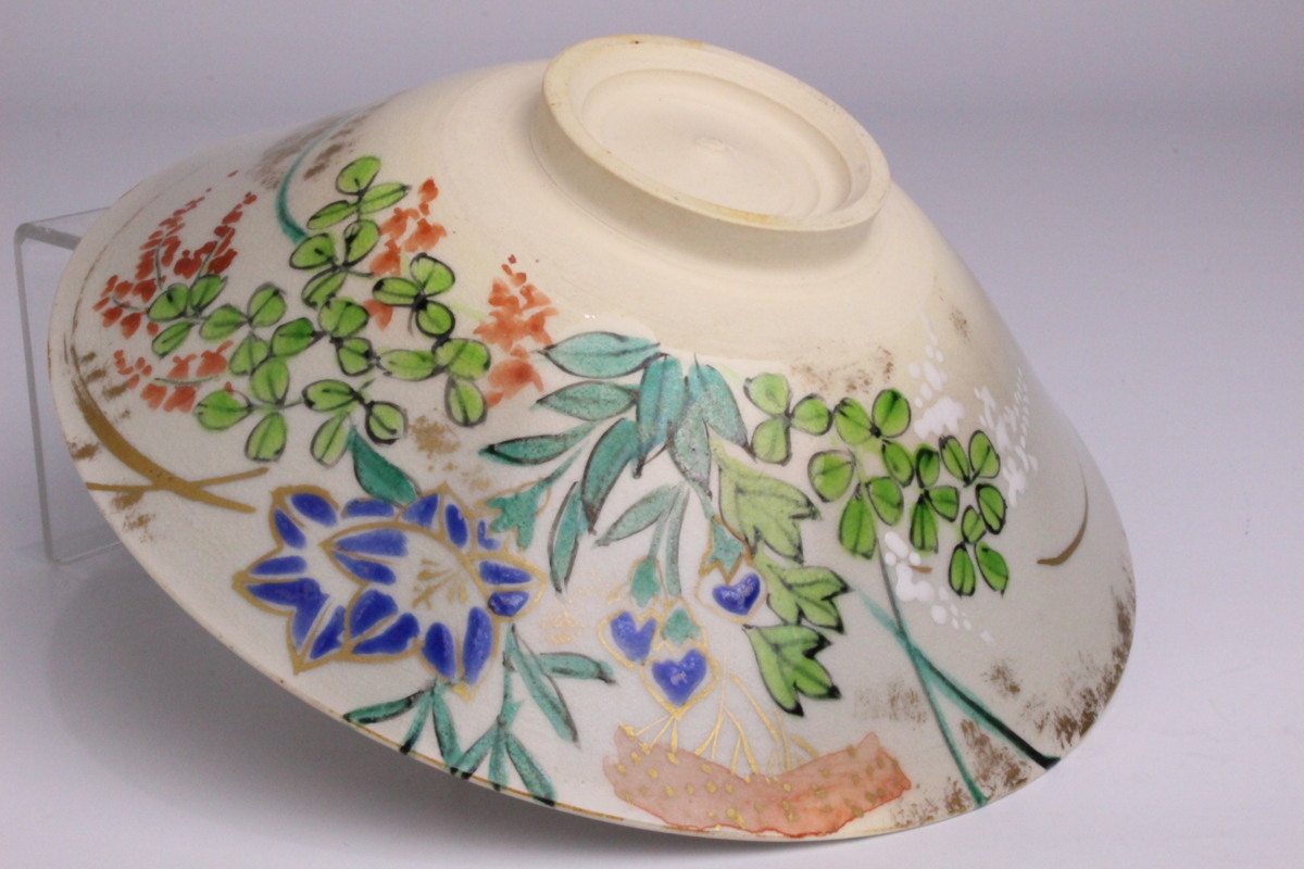 - 「狸庵 RS」 京焼 山沢松篁 作 千種絵 平茶碗 「銘:白露」 共箱 / 夏茶碗 茶道具 ☆本物保障☆t5hi8j