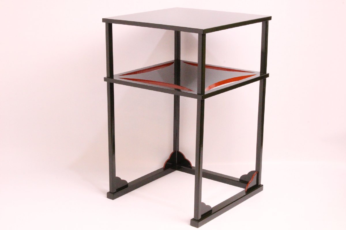 表千家 碌々斎 好 木村表斎 作 青漆爪紅 糸巻棚 「共箱」