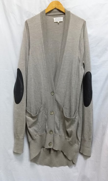 > Maison Martin Margiela☆メゾン・マルタン・マルジェラ エルボーパッチ ニット カーディガン 1 グレー ウール×羊革 ロングカーディガン