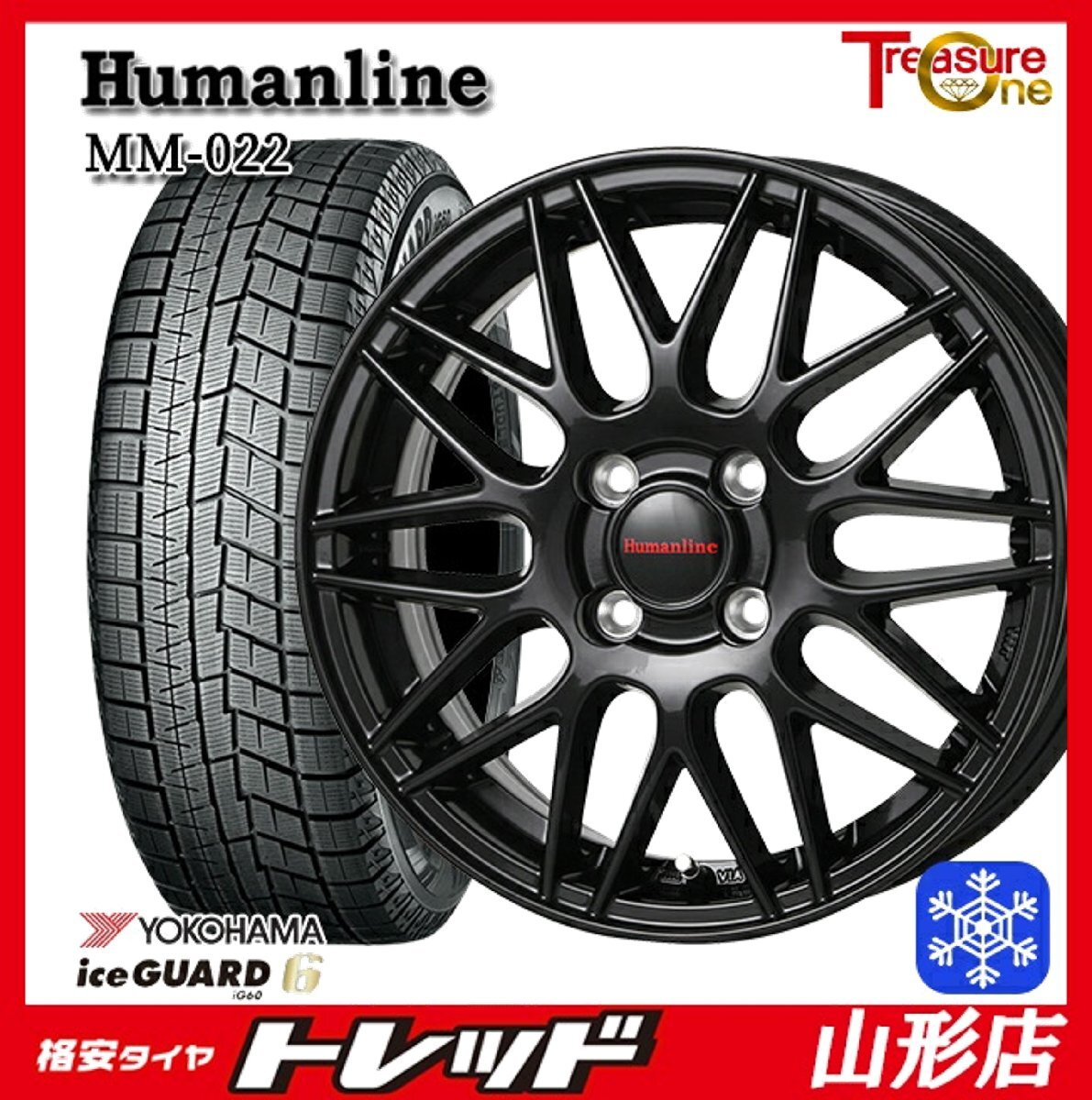 > 山形店 新品 冬タイヤ ホイール 4本セット ヒューマンライン MM-022 15インチ 5.5J BK ヨコハマ アイスガード6 IG60 185/60R15 2024年製