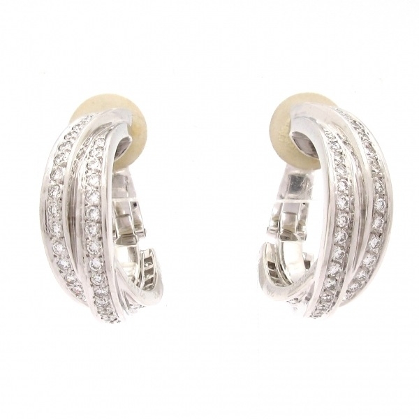 > 磨き済み■カルティエ Cartier イヤリング N8013100 スリーバングルズ K18WG×ダイヤモンド 美品 アクセサリー(耳)