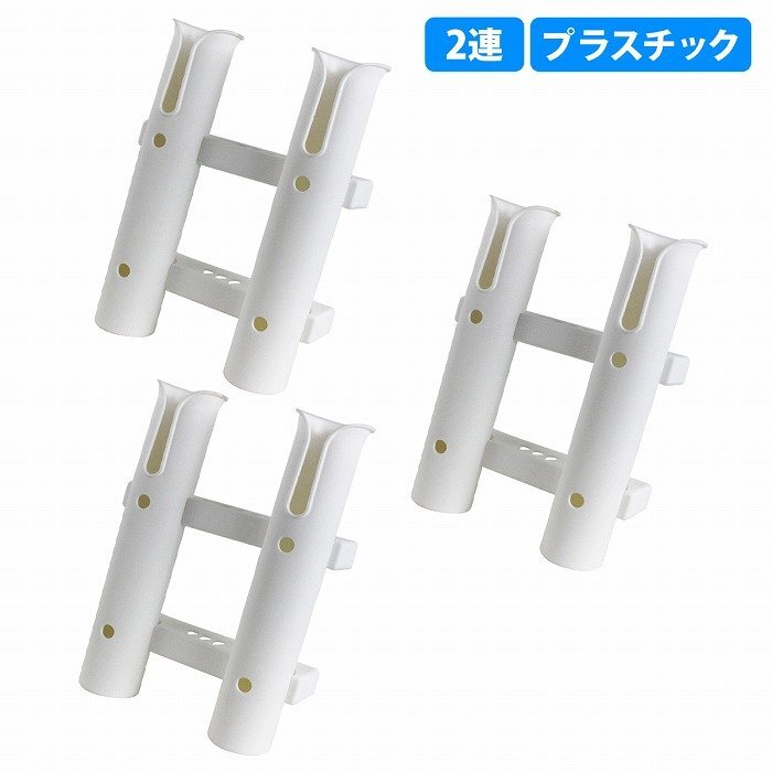 - [2連 3個セット] ロッド ホルダー 竿 立て 置き 入れ 釣り フィッシング スタンド ネジ付 固定 船 漁船 ボート 白 ホワイト