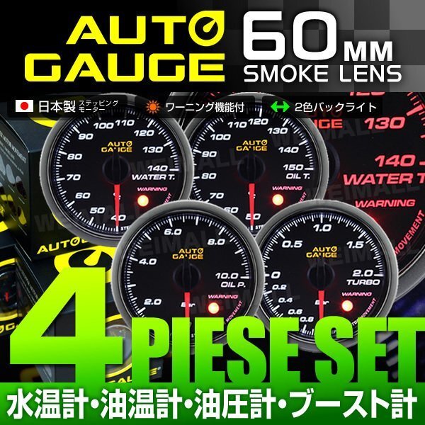 > 【4点セット 水温計/油温/油圧/ブ―スト計】オートゲージ 60mm 430 60Φ スモークレンズ 計器 カスタム オーバーヒート 追加メーター