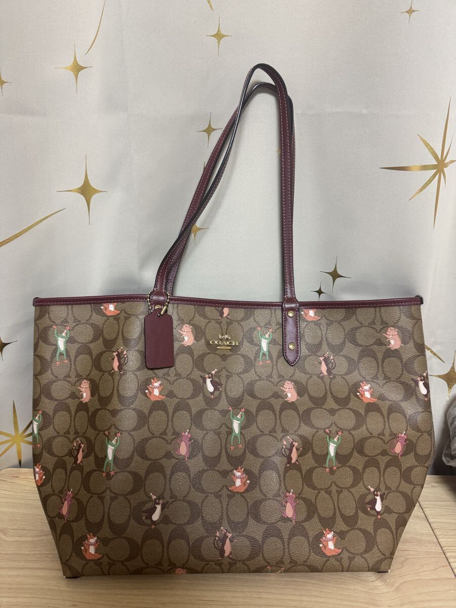 - COACH コーチトートバッグ F80246 カーキピンクマルチ×ワイン 大容量 肩掛け
