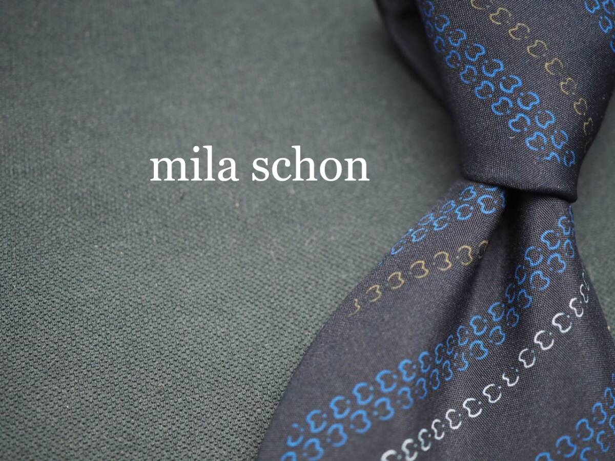 > 美品【Mila Schon ミラショーン】 G1814 ブラック ブルー系 SILK ブランド ネクタイ 古着 良品 転売 仕入
