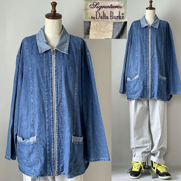 > ★90s位 USA製 ビンテージ マイナー レディース ブランド Signatures by Delta Burke 薄手 デニム 切替え ジャケット サイズ3XL インディゴ