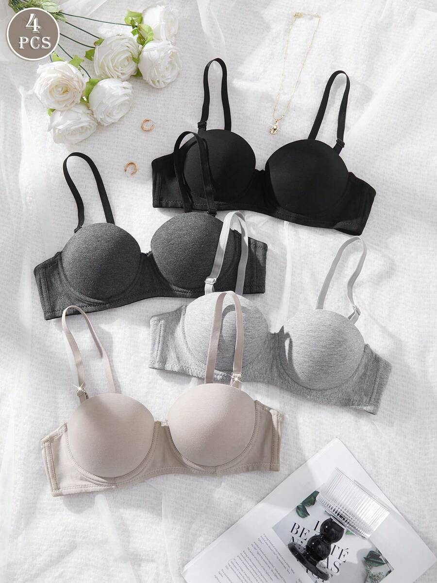 - インティメート ブラジャー 4個入り レディース快適睡眠用 マルチカラー ワイヤー入り ソフトカップ 無地 プッシュアップ アンダ