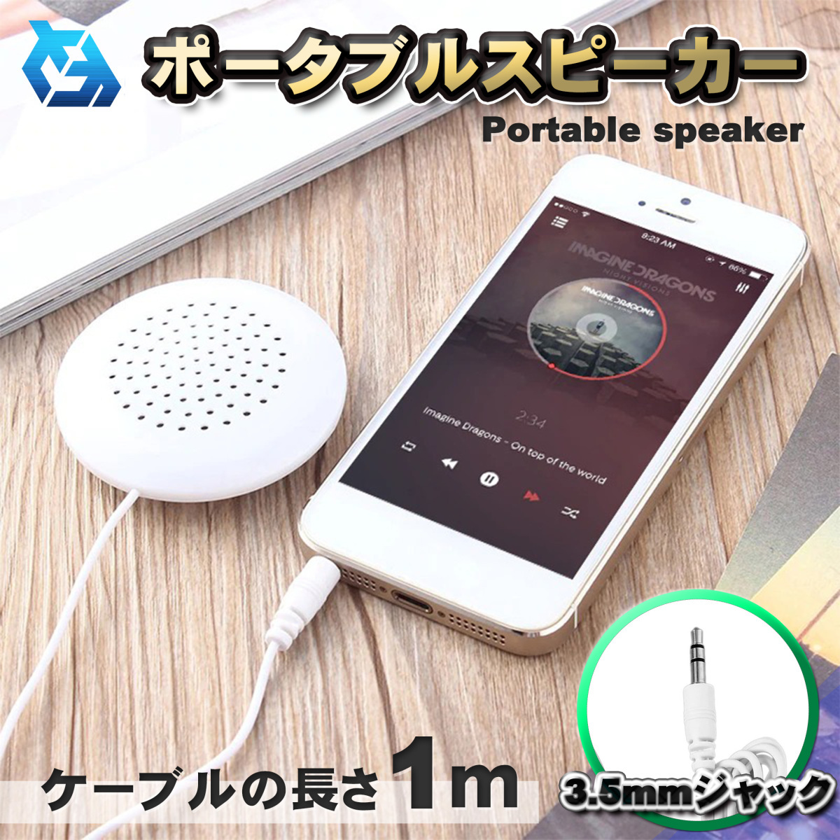 > コンパクト ミニ ポータブル スピーカー 3.5mm イヤホンジャック タイプ 電源不要 接続するだけで使用可能1メートル 【ホワイト】