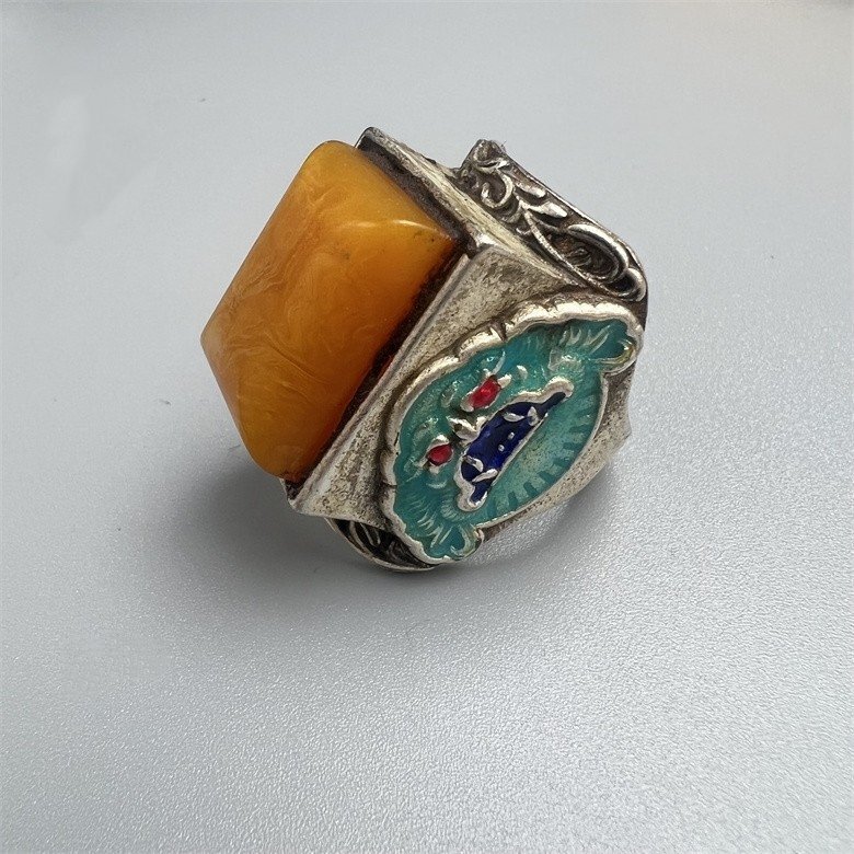 - 送料無料 指輪 リング メンズ アクセサリー チベット 蜜蝋 景泰藍 銀製 銀器 ヴィンテージ 装飾 郵便発送 コレクション ZH1899