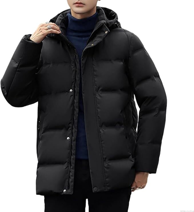 - ダウンジャケット メンズ ジャケット 中綿ジャケット ショート丈 フード付き 軽量 防寒着 保温 暖かい(サイズ: L 色: ブラック)