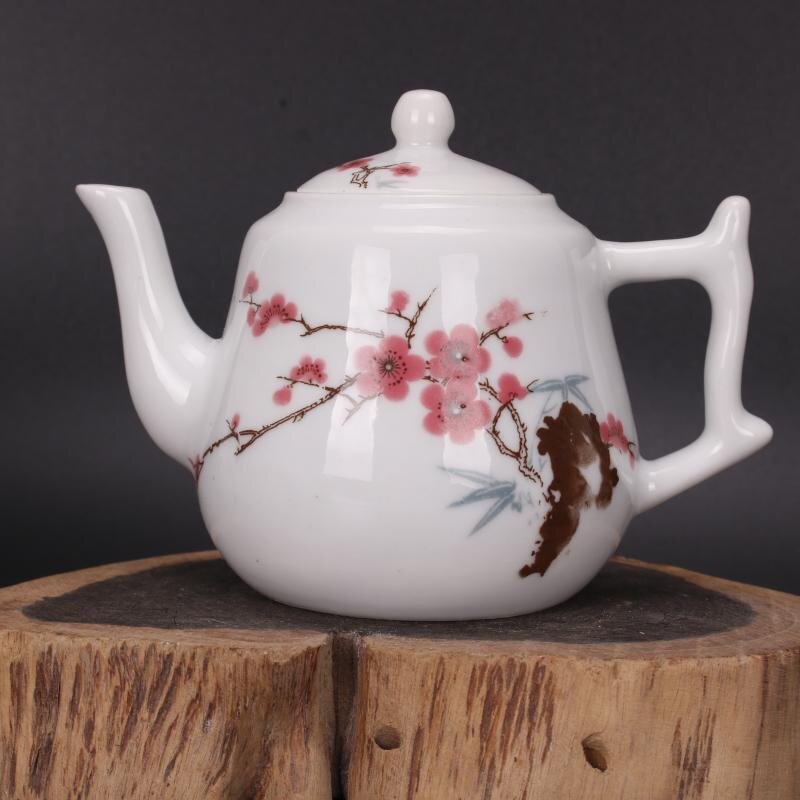 - 景徳鎮 1975年 粉彩花紋茶壺 粉彩 片面梅花急須 煎茶道具 中国美術 中国茶器 粉彩花紋茶壺 急須 粉彩 急須茶具 茶道品 置物 擺件