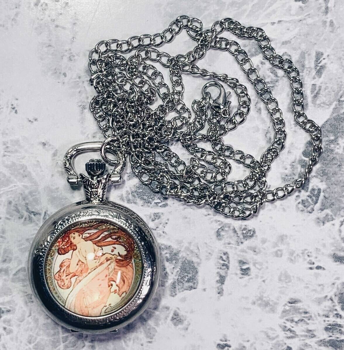 - ◆同梱発送可◆「懐中時計 ミュシャ/舞踏 連作:四芸術より シルバー」 fire_sale 【タグ:アクセサリー】
