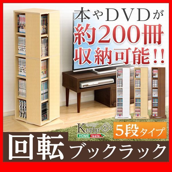 - 本棚★回転ブックラック 5段/コンパクト 省スペース 39x39cm/大容量 収納 本 200冊 DVD 200枚 CD 280枚/ナチュラル ウォールナット 白/zz