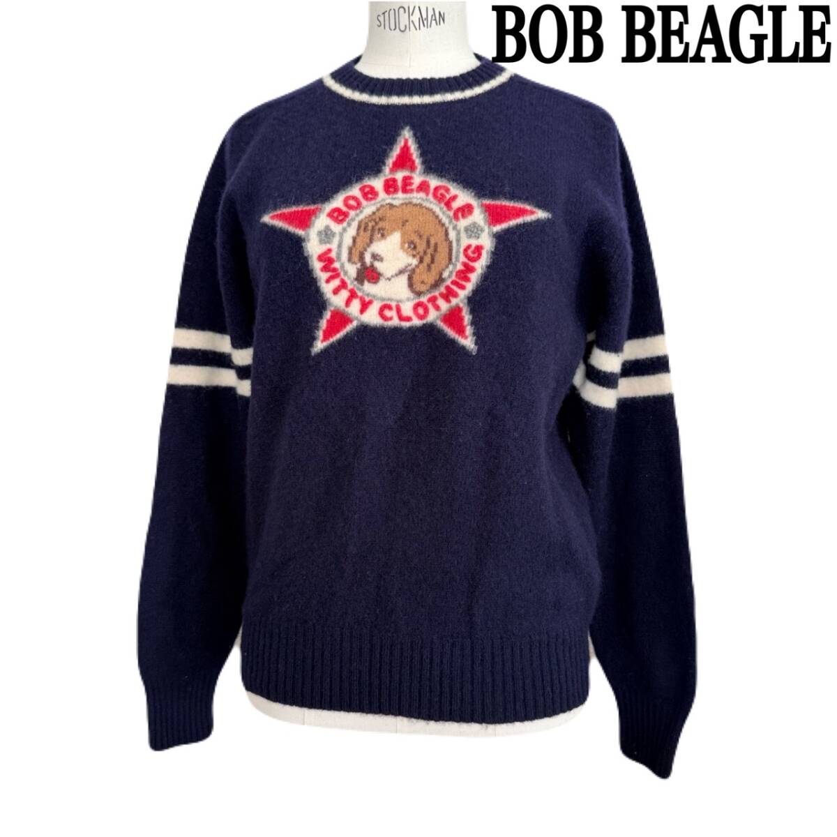 > ★ 90s 希少 BOB BEAGLE ボブビーグル イーストボーイ ウール ニット セーター 長袖 ネイビー サイズ L ★
