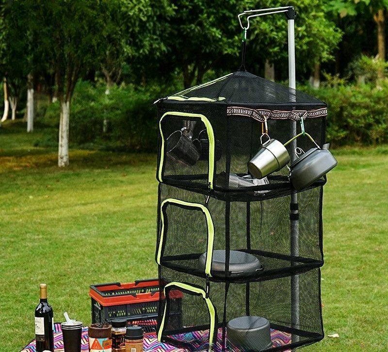 - サンネット 折りたたみ 3つ 収納バスケット ぶら下がり釣り 干物 野菜干しラック BBQ キャンプ アウトドア (グリーン)267gr