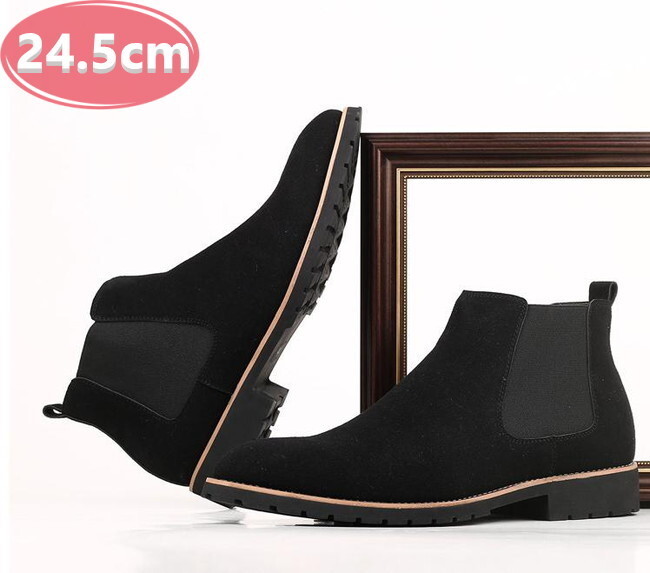 > サイドゴア メンズ ビジネス PUレザー シューズ ブラック 24.5㎝ 革靴 靴 カジュアル 屈曲性 通勤 軽量 インポート品【n155】