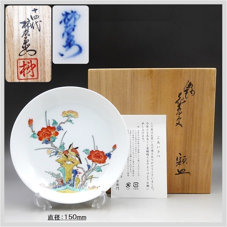 ◆製品名:十四代 酒井田柿右衛門 錦 花鳥文 額皿 飾皿 共箱付 柿右衛門 人間国宝 有田焼 陶器 器