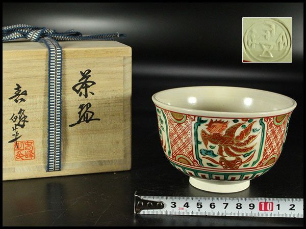 - 【金閣】茶道具 春峰造 赤絵茶碗 共箱 未使用 旧家蔵出 送料無料(A505)
