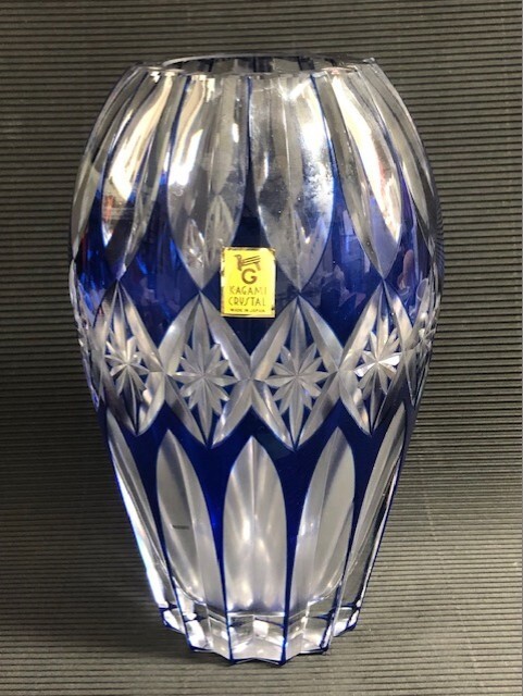 - ◎KAGAMI カガミクリスタル 色被せ切子 花瓶◎z52
