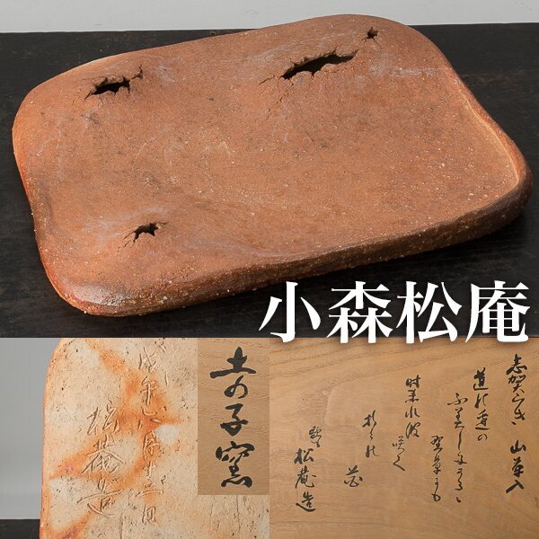 > 【千h1241】小森松庵 土の子窯 信楽 山草入 幅約32cm 共箱 信楽焼 花入 花器 水盤