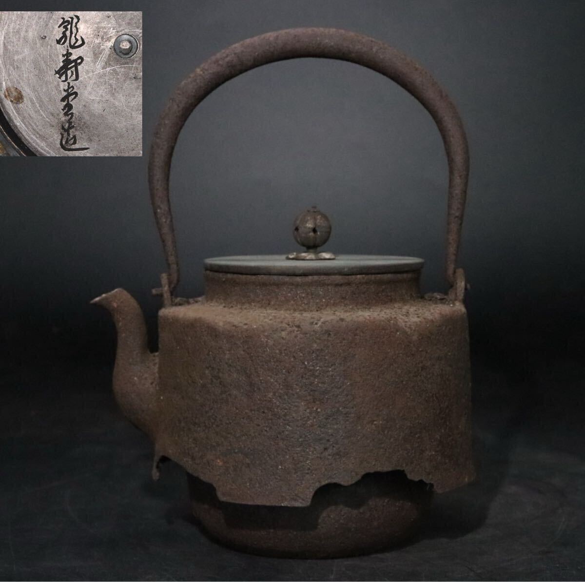 - 龍寿堂 造 款 変形 鉄瓶 容量約1350ml / 煎茶道具 急須 湯沸し .B1382