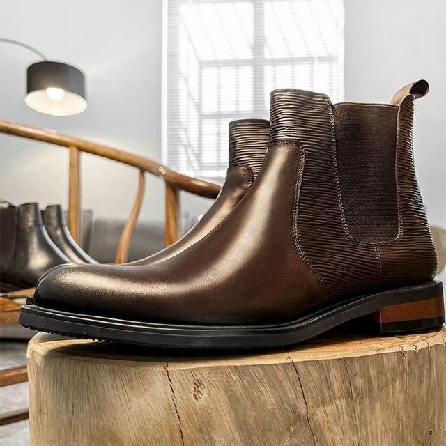 - サイドゴアブーツ ブーツ メンズシューズ チェルシーブーツ 牛革 ビジネスシューズ 本革 革靴 フォーマル 紳士靴 ブラウン 24.5cm