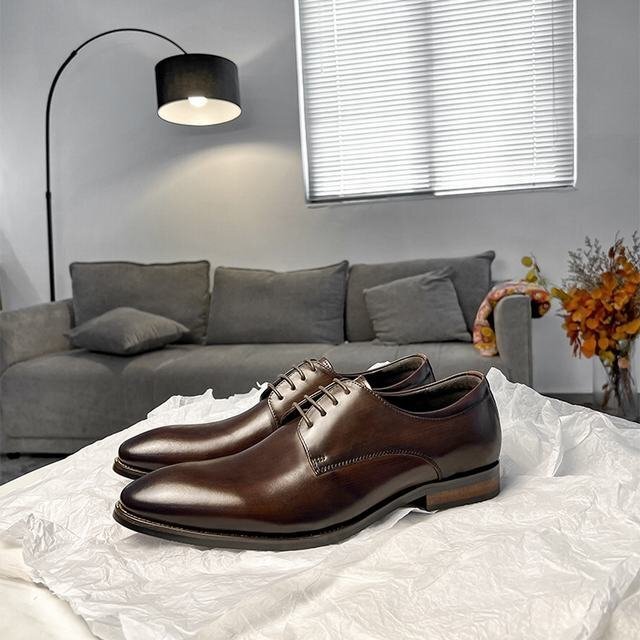 - メンズビジネスシューズ メンズシューズ 牛革 男性靴 シンプル 革靴 紐靴 フォーマル 本革 紳士靴 通勤 就活 コーヒー 26cm
