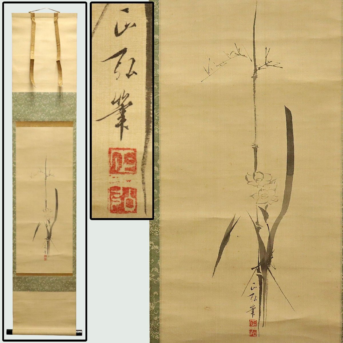 - 真作保証 江戸後期の大名 老中首座 備後国福山藩第7代藩主 阿部正弘公 水仙之図 絹本 箱 備後 掛軸 書画 骨董品 0131ocfyN