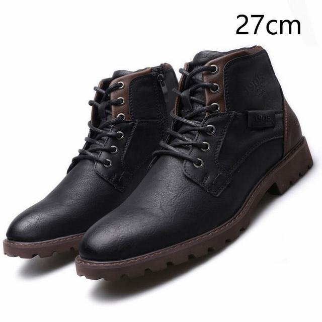 - ショートブーツ メンズ ハイカット 美脚 ブーツ ワークブーツ PU革 バイクブーツ レトロ ライダース イギリス風 ブラック27cm