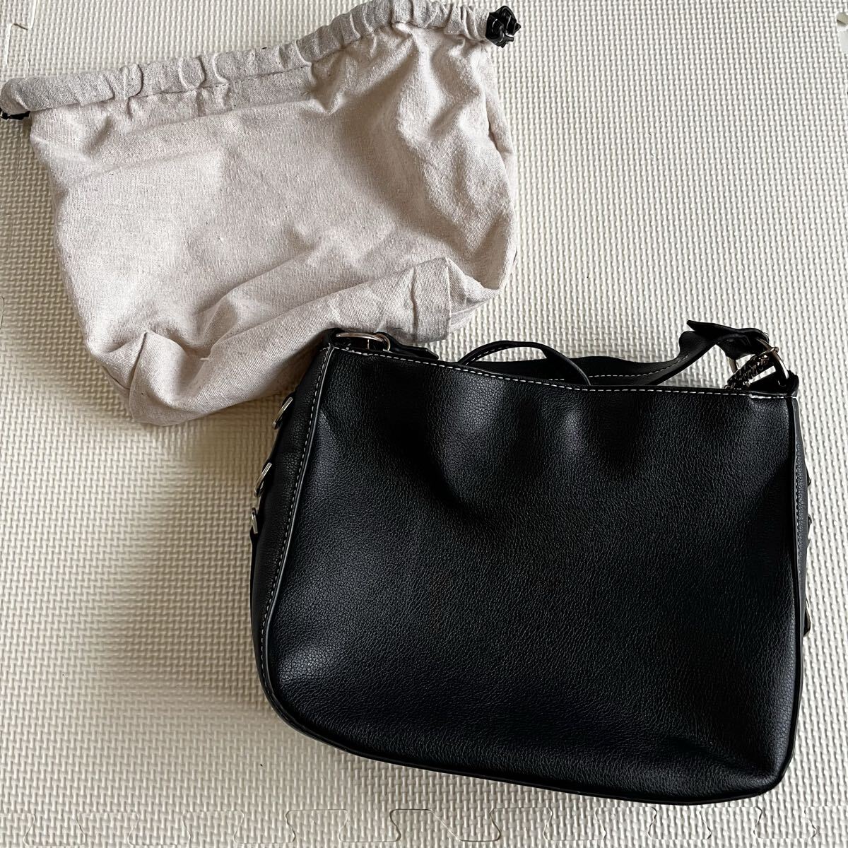 - ☆⑪美品 ZARA ショルダーバッグ ハンドバッグ レザー ブラック 黒 袋付き