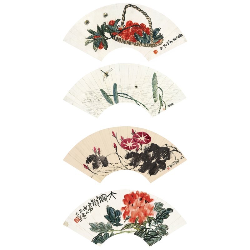 - 店長勧め 極美品 ! 中国美術 4枚セット 斉白石 植物 画仙紙 表装なし 未表装 画芯 鑑賞 扇子画 装飾 zh828