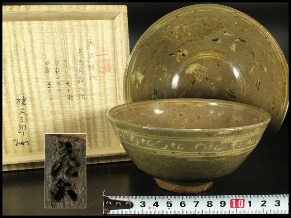 > 【金閣】茶道具 真清水蔵六作 雲鶴三嶋 茶碗 桂又三郎 書付 旧家蔵出 送料無料(YC559)