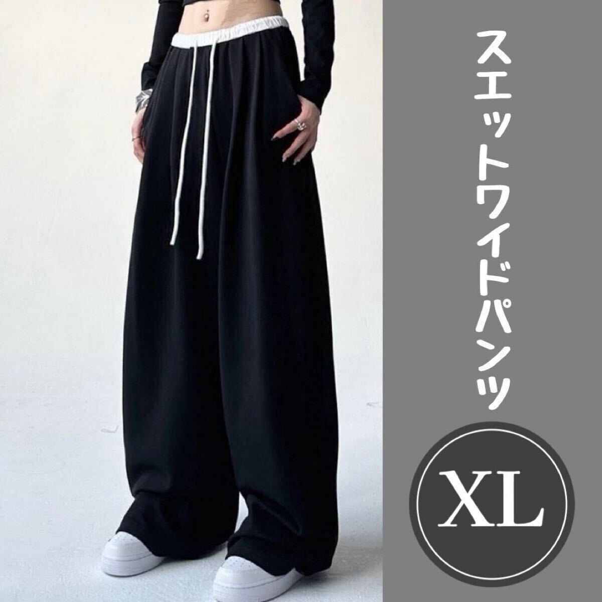 - レディース メンズ スウェットXL ワイドパンツ イージーパンツ ブラック部屋着 ワイドパンツ パンツ ゆったり カジュアル