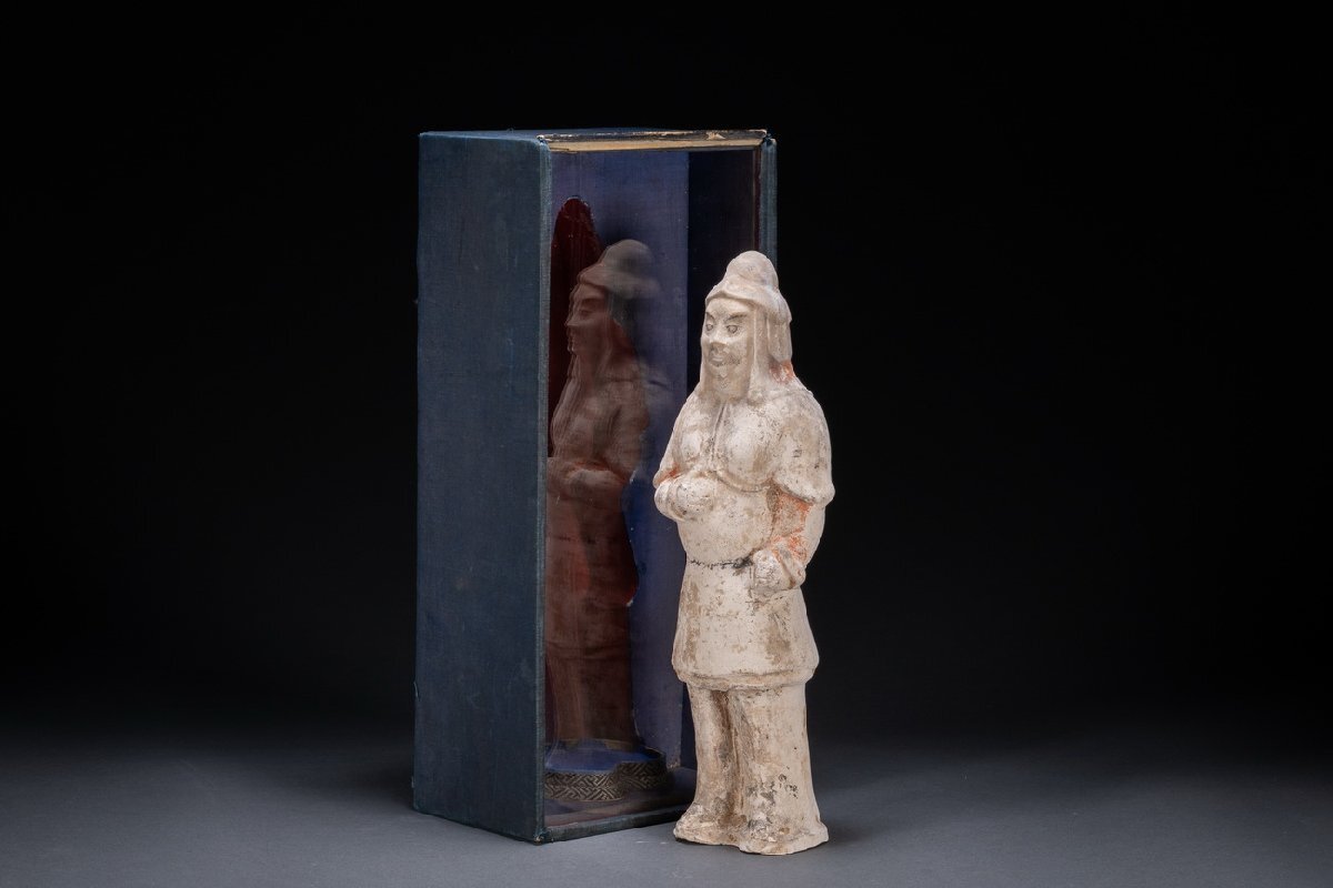 > 【雲錦】某有名オークション購入 唐時代 古陶俑 共箱 古置物 古美術 時代コレクション7L10-105S2