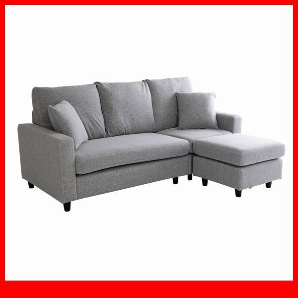 > ソファ★3人掛けカウチソファ/オットマン カウチ 脚を外してロースタイル 自由自在/布製 ポケットコイル クッション付き/ライトグレー/a4