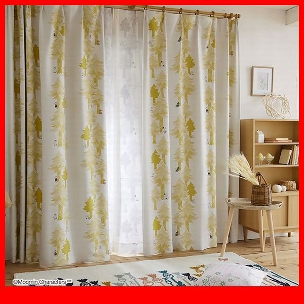 - カーテン★新品/MOOMIN ムーミン ドレープカーテン 100×135cm 1枚/遮光 洗濯機可 形状記憶加工 安心安全の日本製/イエロー/a4