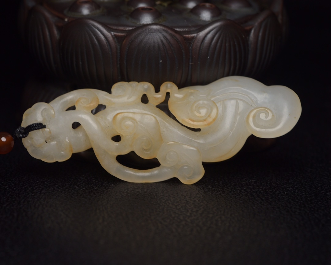 - 旧蔵 和田玉彫 如意 根付 中国古玩 骨董品 時代物 稀少唐物