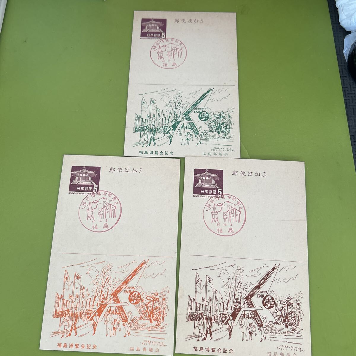 - ★未使用 古い郵便はがき 福島博覧会記念印 絵はがき ポストカード 昭和40年10月3日 福島郵趣会 コレクション コレクター3種セット